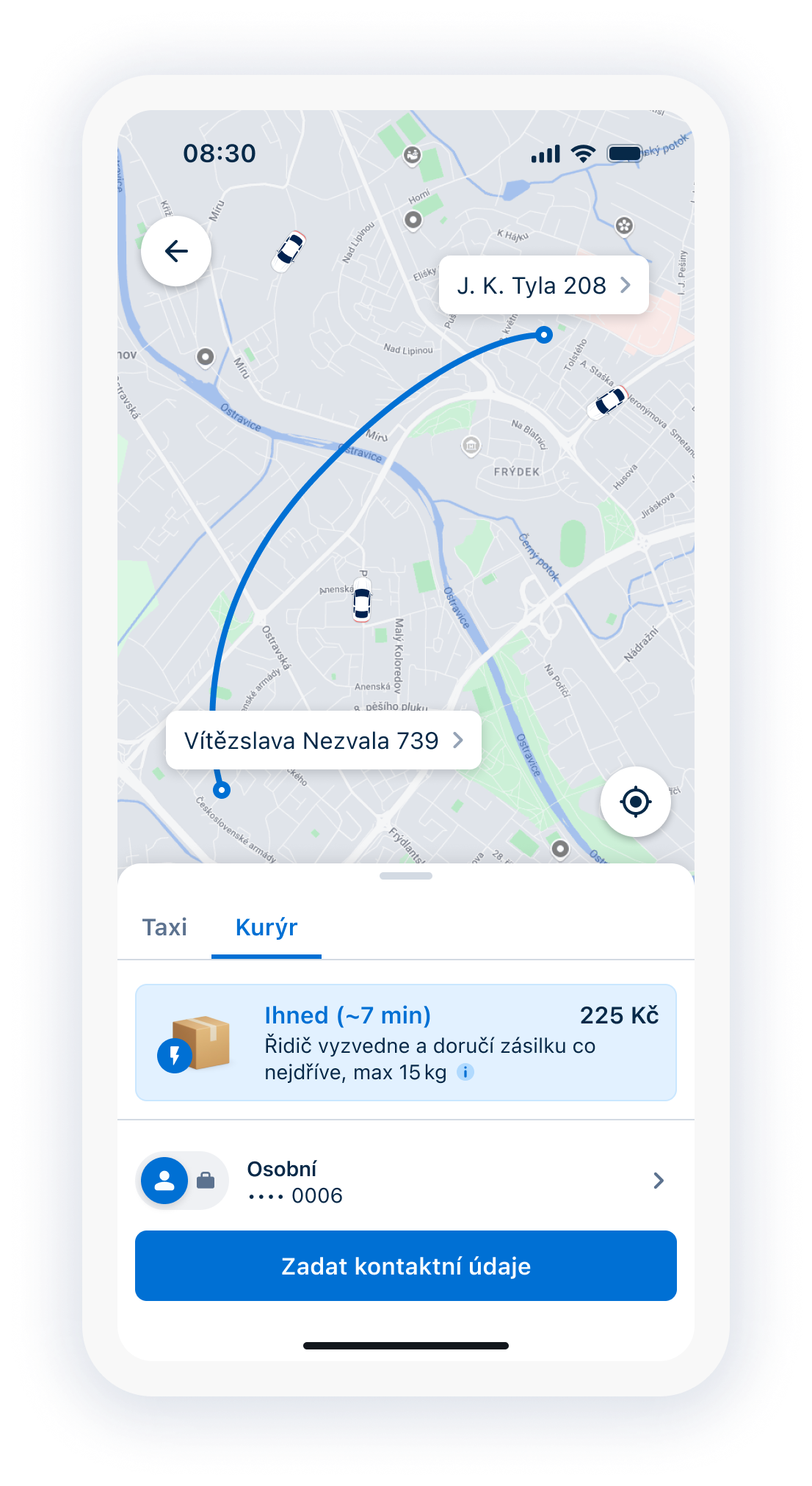 Jsme taxi i kurýr v jedné aplikaci. Zásilku s námi pošlete jednoduše i bez zabalení.